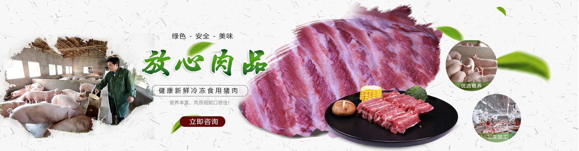 為保證豬肉產(chǎn)品的安全、放心,公司精選無(wú)公害生豬養(yǎng)殖場(chǎng)作為貨源基地,依托高品質(zhì)豬肉、現(xiàn)代化設(shè)備和強(qiáng)大的倉(cāng)儲(chǔ)配送優(yōu)勢(shì),積極實(shí)施產(chǎn)、加、銷(xiāo)一體化,加快推進(jìn)企業(yè)產(chǎn)業(yè)化經(jīng)營(yíng)。